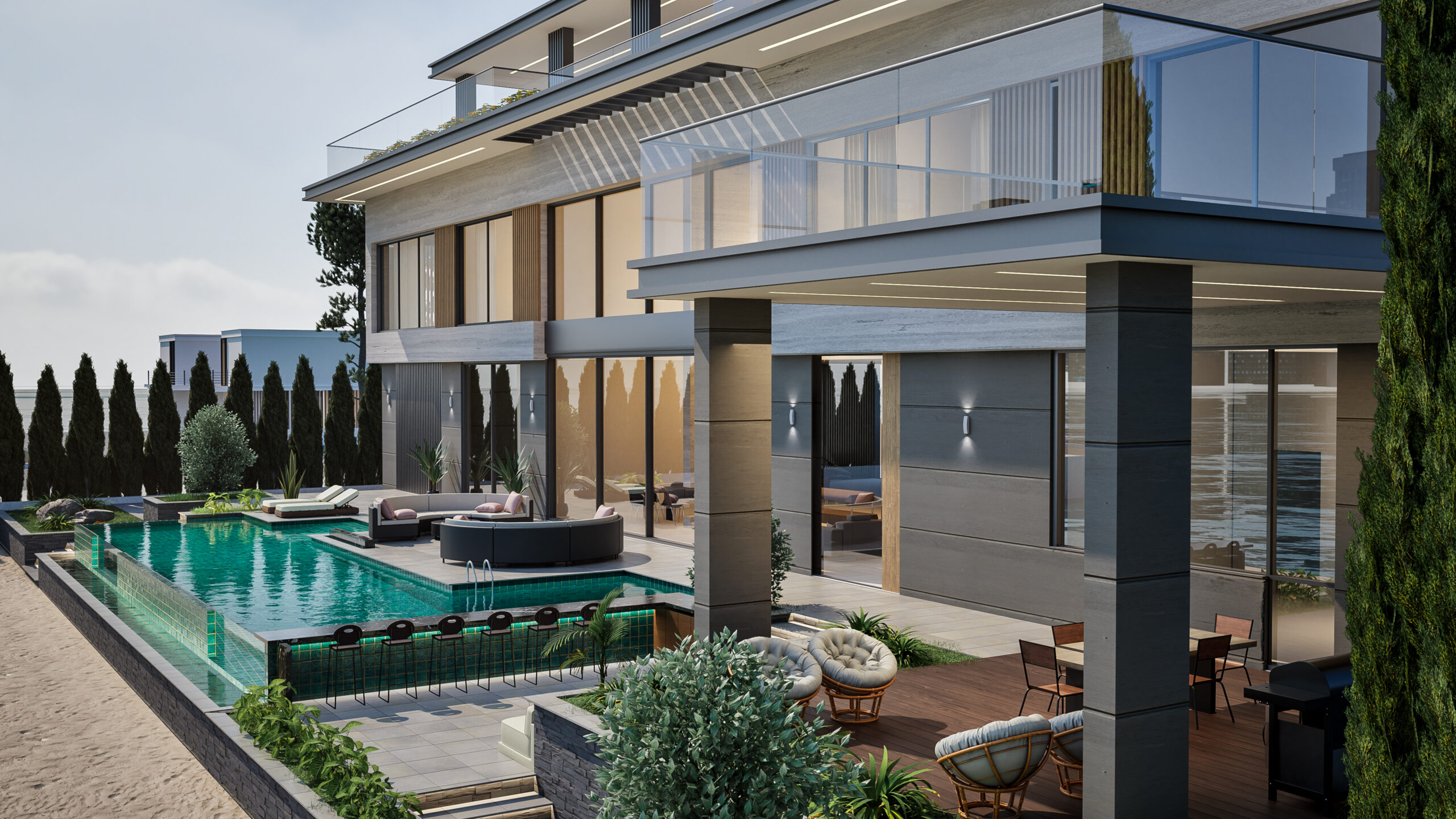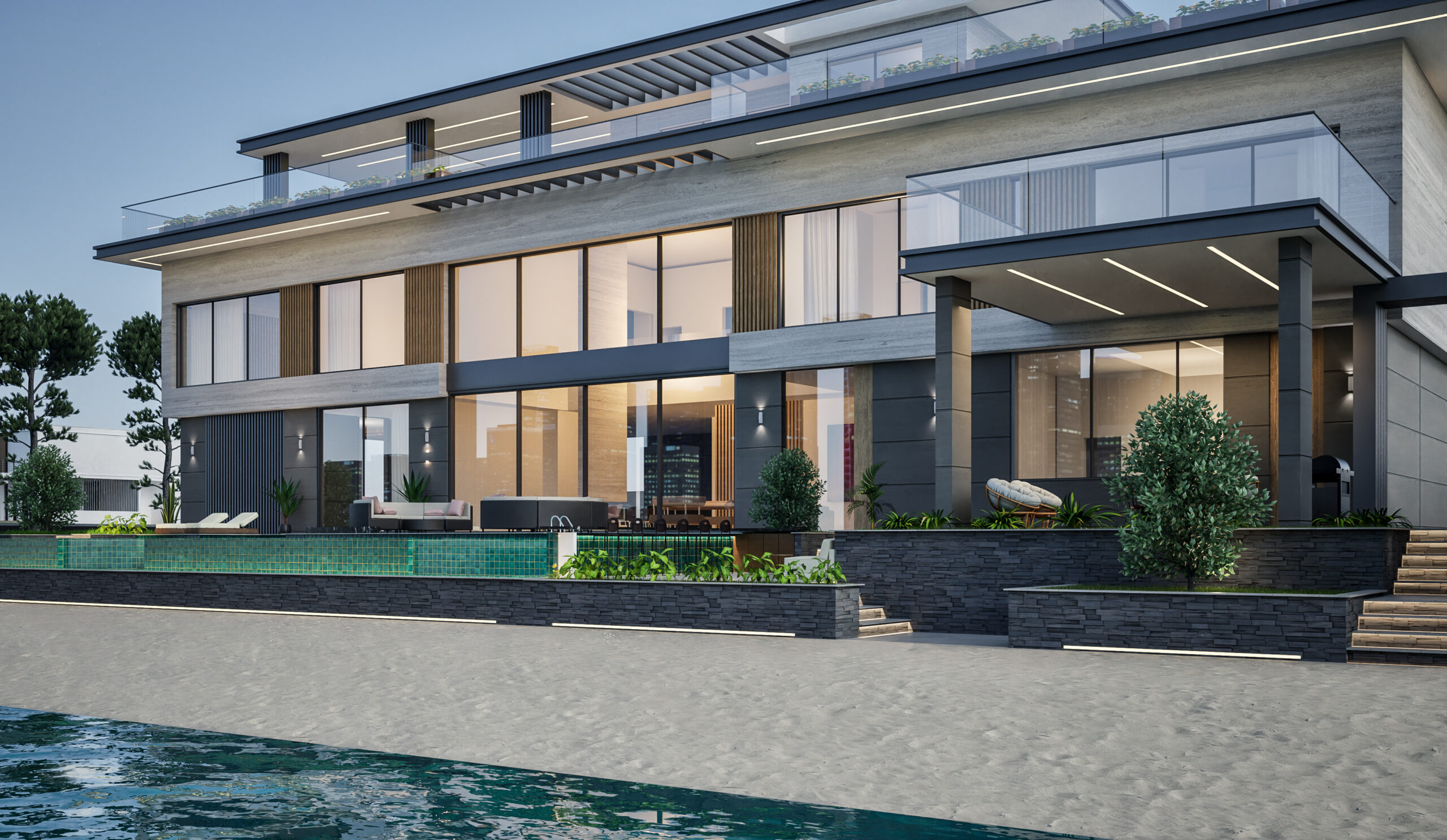 This luxury villa redefines modern waterfront living with its sleek architectural lines and resort-inspired design. Spanning multiple levels, the residence features expansive glass façades that maximize natural light and offer uninterrupted views of the water.