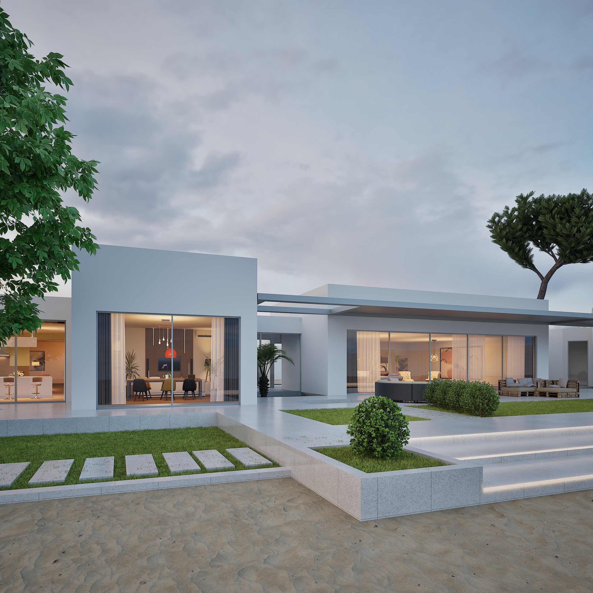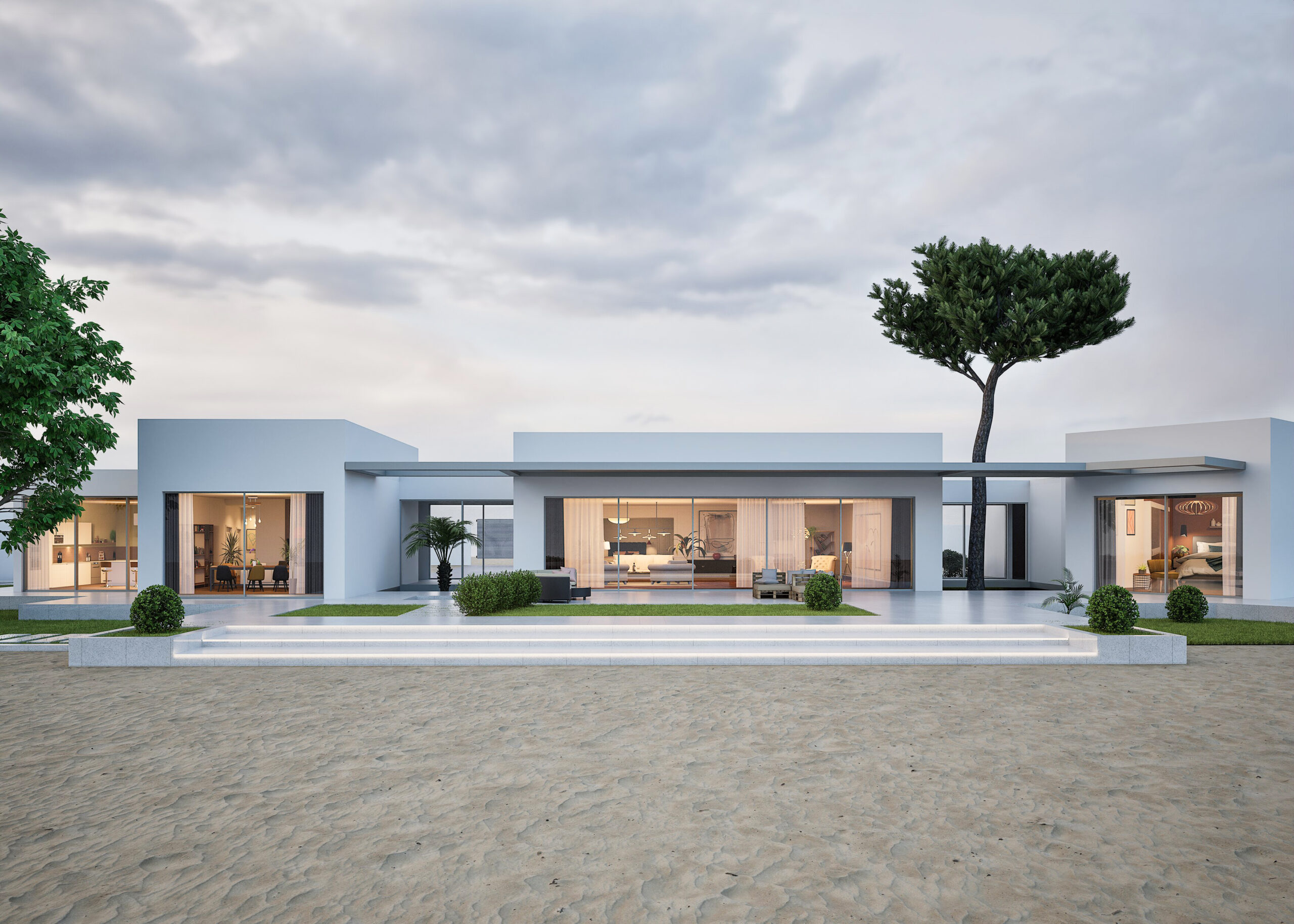 This waterfront rest house is designed as a serene retreat, embracing simplicity and elegance through its modern single-level form. The architecture emphasizes openness, with wide glass façades that blur the line between indoor and outdoor living, offering uninterrupted views of the sea. Clean lines, expansive terraces, and a calm landscaped setting create a peaceful escape that balances contemporary design with a relaxed coastal lifestyle.
