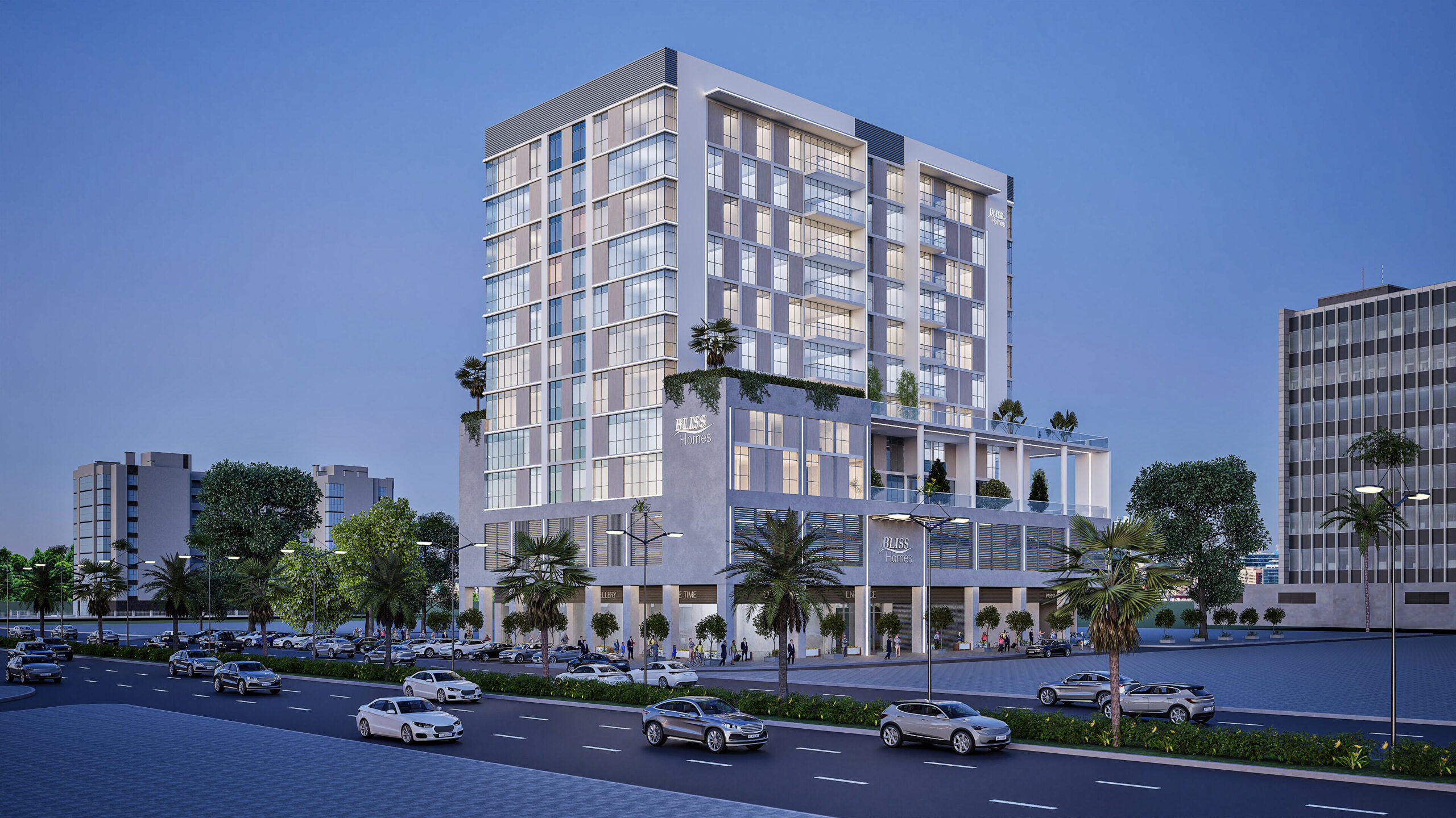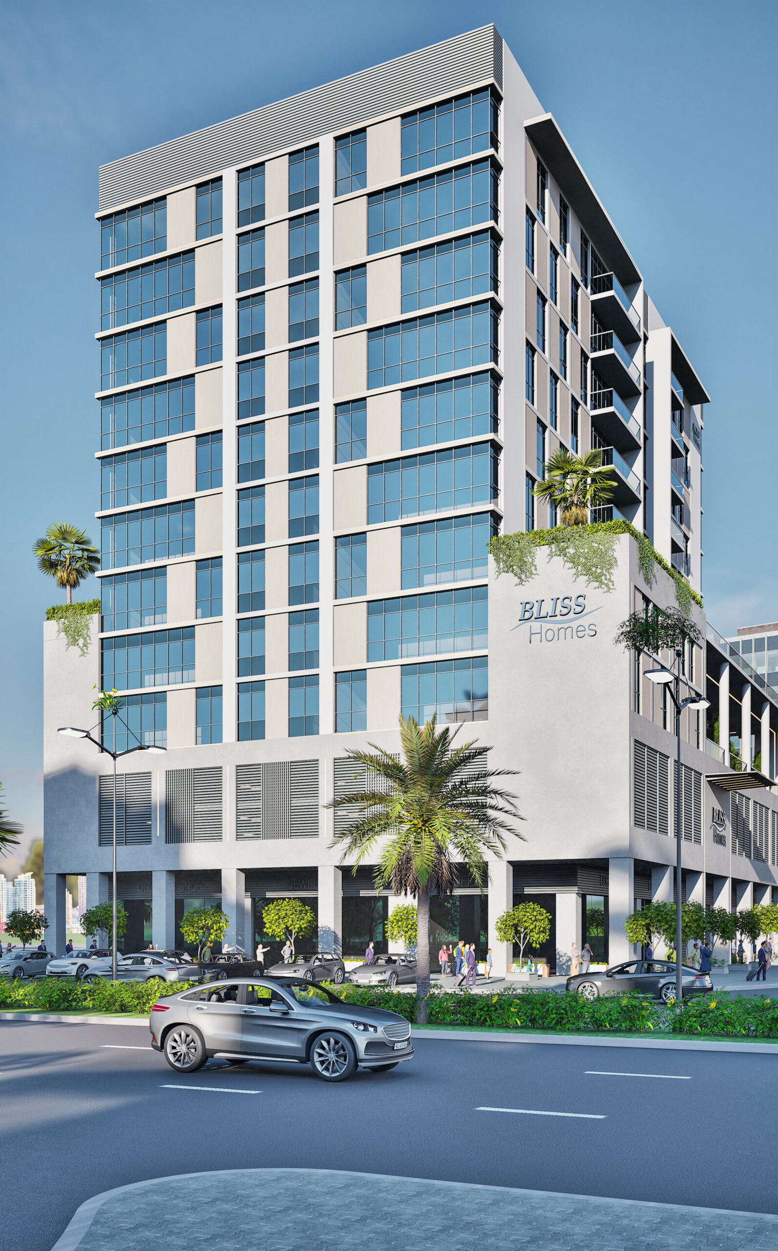 Bliss Homes is a modern commercial and residential development located in the fast-growing urban hub of Zayed City, Abu Dhabi. Designed with a balance of functionality and elegance, the tower features a contemporary façade with sleek glass panels, geometric lines, and landscaped terraces.